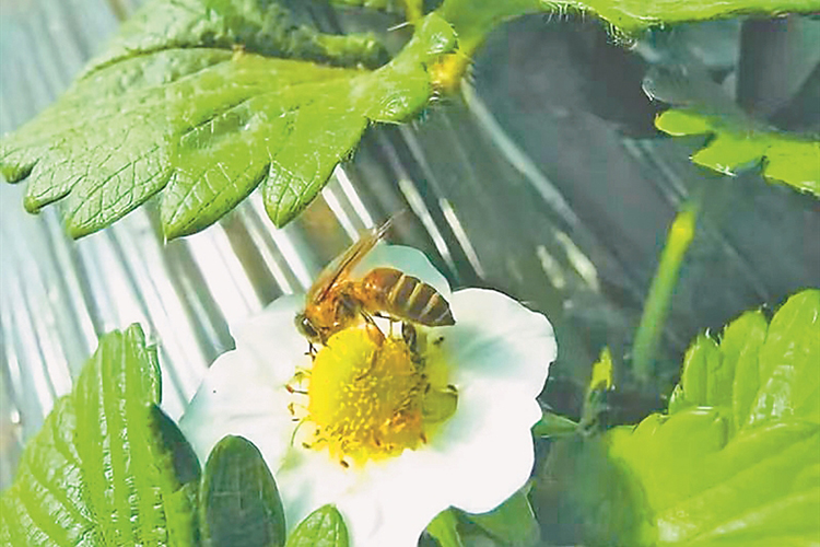 “今年,我種了兩棟草莓,棚內(nèi)還放養(yǎng)了蜜蜂,不但解決了冬季草莓授粉問題,還使草莓上市時(shí)間提前了一個(gè)星期?!焙瑫r(shí)節(jié),在雙鴨山農(nóng)場翠博園“果蔬王國”基地內(nèi),草莓陸續(xù)進(jìn)入開花期??粗蝗盒∶鄯湓诨▍仓行燎趧趧?dòng),種植戶殷濤喜高興地跟記者算起經(jīng)濟(jì)賬:“等元旦前上市,將秒變市場‘團(tuán)寵’,預(yù)計(jì)每畝收入10萬元左右。”2017年以來,雙鴨山農(nóng)場共搭建10余棟日光溫室,打破傳統(tǒng)“春種秋收”的種植觀念,擴(kuò)大棚室果蔬產(chǎn)業(yè),累計(jì)帶動(dòng)職工群眾增收200余萬元。