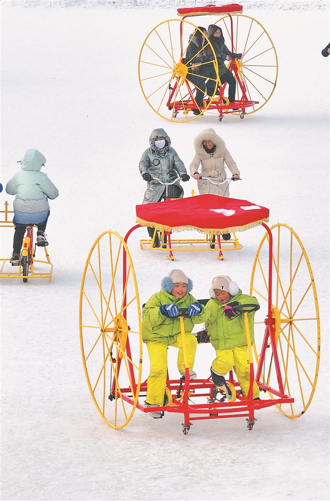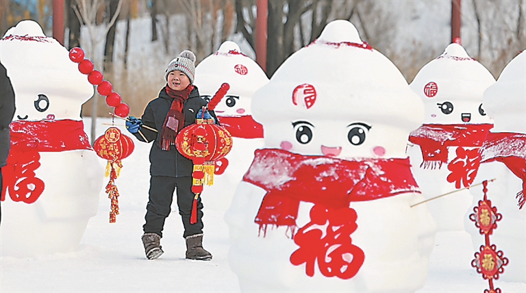 1月29日,大年初一,哈爾濱太陽(yáng)島雪博會(huì)園區(qū),游人如織。孩子們?cè)诩议L(zhǎng)的帶領(lǐng)下,坐雪圈、騎冰上自行車(chē),玩冰戲雪,歡樂(lè)融融。省博物館展廳內(nèi),懸掛了紅燈籠、紅條幅,許多市民、游客在參觀學(xué)習(xí),打卡拍照,體驗(yàn)傳統(tǒng)民俗。