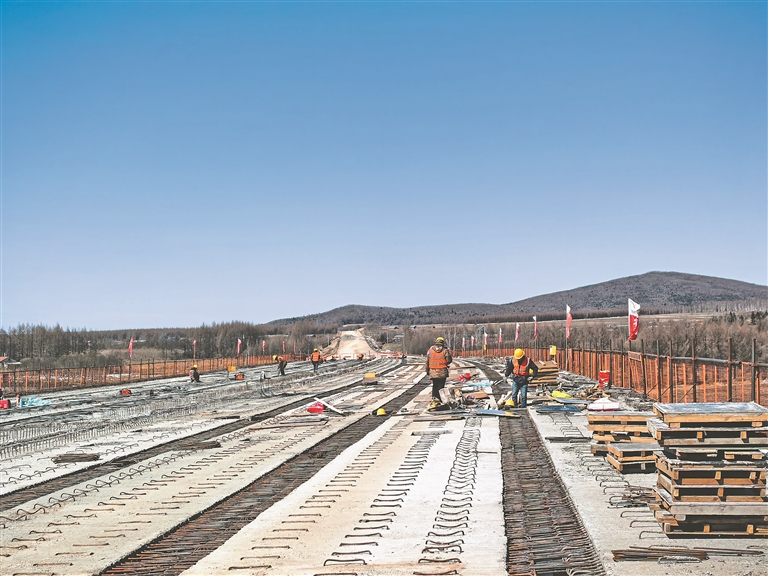 日前,在G1111鶴哈高速苔青至伊春段梅花河大橋的施工現(xiàn)場,數(shù)十名工人正熱火朝天地進行橋梁的鋼構(gòu)件加工和安裝工作。鶴哈高速苔伊項目3月16日正式復(fù)工復(fù)產(chǎn),為完善龍江高速公路網(wǎng)絡(luò)按下“加速鍵”。