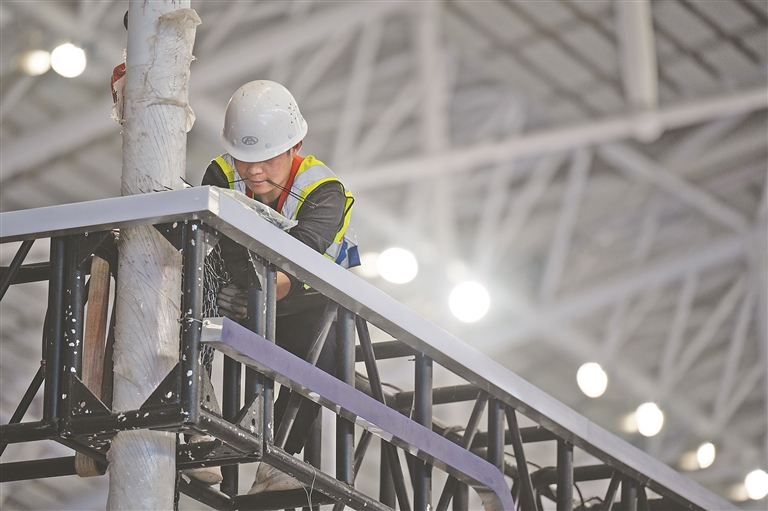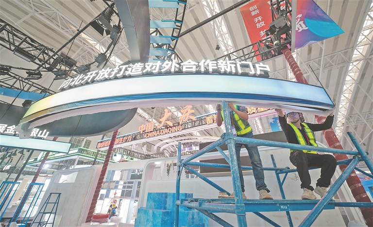 5月14日,距離哈洽會(huì)開(kāi)幕還有三天時(shí)間,記者來(lái)到第34屆哈洽會(huì)展館施工現(xiàn)場(chǎng),各區(qū)域展臺(tái)已搭建成型,施工工人們正在有條不紊地裝飾展區(qū)細(xì)節(jié)部分。