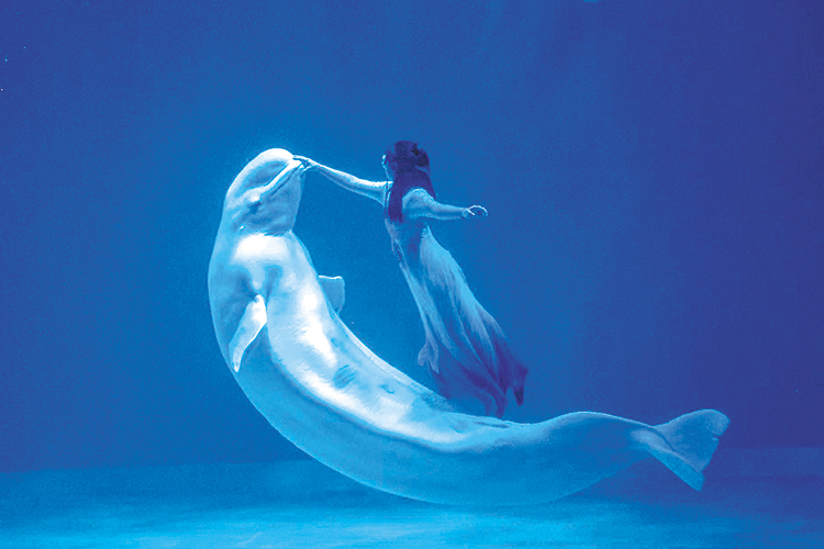 假日期間,哈爾濱極地公園吸引眾多親子家庭前往。在白鯨秀場,保育員身著古風(fēng)服飾,在中國風(fēng)樂曲中與白鯨共舞,演繹“海洋之心”的東方詩意;