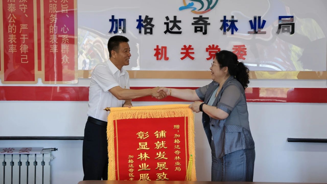 黑龍江經(jīng)濟(jì)網(wǎng)訊(李金庫(kù) 記者馬朝林)7月7日,大興安嶺地區(qū)加格達(dá)奇區(qū)光明社區(qū)的工作人員將一面印有“鋪就發(fā)展致富路 彰顯林業(yè)服務(wù)心”的錦旗,送到大興安嶺林業(yè)集團(tuán)公司加格達(dá)奇林業(yè)局黨委委員、副局長(zhǎng)何純生手中?!斑@面錦旗代表著社區(qū)全體居民的心意,感謝林業(yè)局及時(shí)伸出援手,解決了我們出行的大難題!”社區(qū)工作人員的話語(yǔ)中滿是真誠(chéng)。