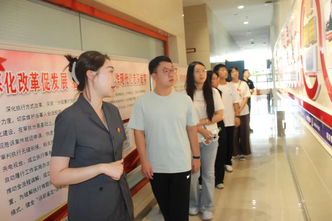 為了讓實(shí)習(xí)生們盡快了解法院工作,熟悉工作環(huán)境,肇東市人民法院組織實(shí)習(xí)生們參加了第166次“公眾開放日”活動(dòng)?;顒?dòng)中,在講解員的引領(lǐng)下,大家先后參觀了法院審判法庭大廳、法警辦公室、科技法庭、少年審判庭、訴訟服務(wù)中心、干警體能訓(xùn)練中心、黨史活動(dòng)室、閱覽室等場(chǎng)所,讓大家了解了法院的工作環(huán)境、工作氛圍以及即將開始的實(shí)習(xí)工作中的重點(diǎn)內(nèi)容。