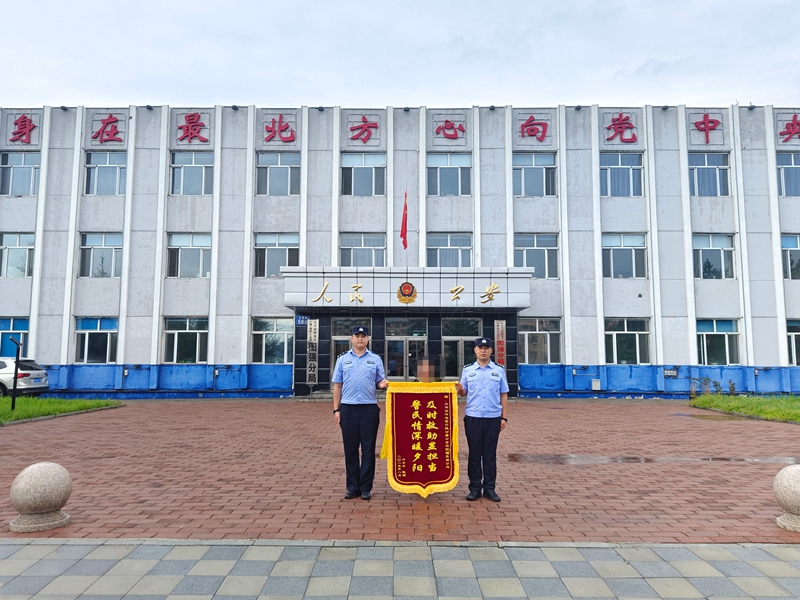 8月12日,老人的家屬葉女士帶著一面印著“及時救助顯擔(dān)當(dāng) 警民情深暖夕陽”字樣的錦旗送至圖強(qiáng)分局民警手中,對民警救助其家屬表示衷心感謝。這面錦旗,不僅是對民警緊急救助的肯定,更映照出“采摘季”里圖強(qiáng)公安民警的默默堅守。