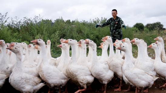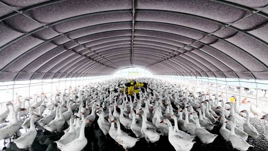 “得益于遠離污染源的天然環(huán)境,鵝群全天在林間自由活動,遵循自然習性自由覓食,而非人工配合飼料。這種養(yǎng)殖方式不僅讓鵝更健康,還通過鵝糞自然還田反哺土壤,實現(xiàn)了養(yǎng)殖與生態(tài)保護的雙贏?!贝簌Z養(yǎng)殖區(qū)工作人員一邊檢查大鵝健康狀況一邊介紹。