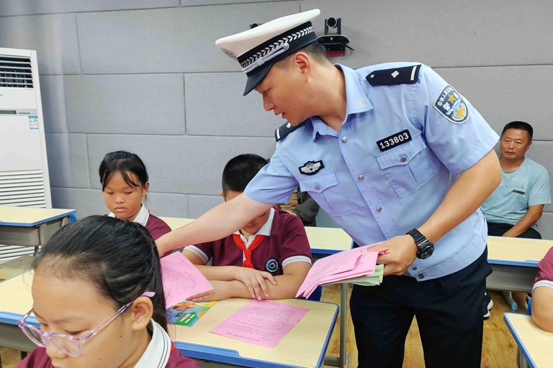 活動中,大隊宣傳民警結(jié)合轄區(qū)交通安全形勢與學生日常出行等特點,通過播放安全出行警示教育片、現(xiàn)場講解、發(fā)放宣傳手冊等形式向同學們普及交通安全法律法規(guī)知識,以及如何安全乘車、安全步行、安全騎車等內(nèi)容,并以互動交流的方式為在場學生們講解交通安全標志標識,交通出行中不系安全帶、不佩戴安全頭盔、闖紅燈、在馬路上嬉戲打鬧、亂穿馬路或翻越交通隔離護欄等違法行為的危害性,教育學生要自覺遵守道路交通法律法規(guī),騎乘電動車時應佩戴好安全頭盔、乘坐汽車時系好安全帶,堅決杜絕不文明交通行為和交通陋習,自覺養(yǎng)成文明交通的良好習慣,爭做道路交通安全的倡導者、踐行者與宣傳者,真正做到安全文明出行。