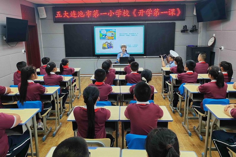 黑龍江經(jīng)濟網(wǎng)訊(李寶 劉昌龍 記者粱新立)9月1日,五大連池市公安局反恐與交巡特警大隊走進市第一小學開展“開學第一課”交通安全進校園宣講活動,為新學期的交通安全教育注入全新活力,全面增強學生交通安全意識,積極守護“平安上學路”,有效預防和減少道路交通事故。