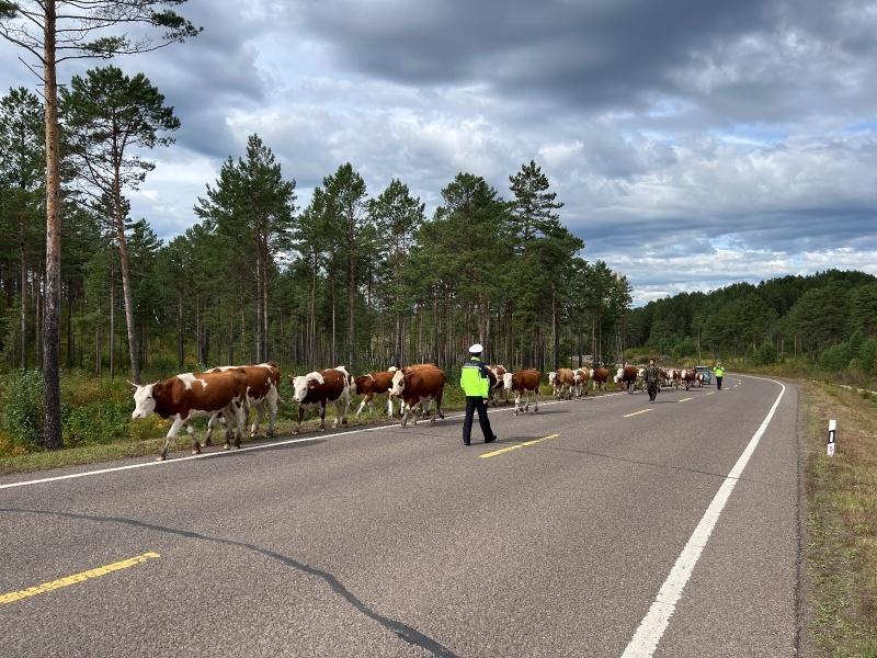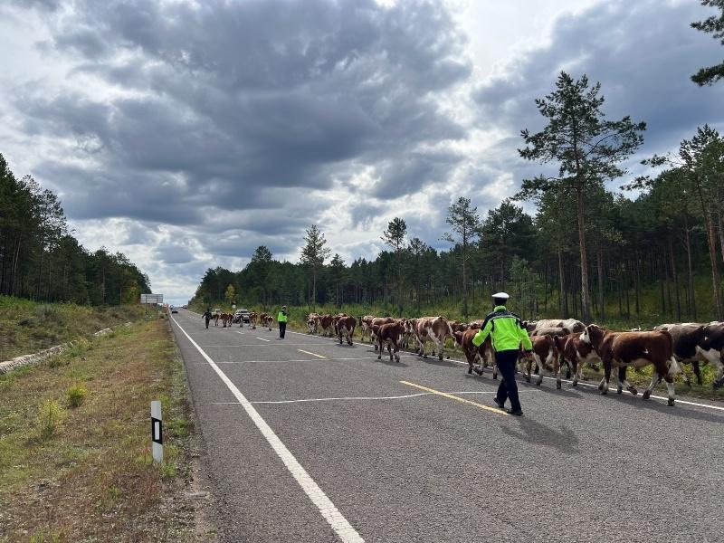 每次牲畜轉(zhuǎn)場(chǎng)大多由一名養(yǎng)殖戶照料,因牛群數(shù)量多、分散廣,養(yǎng)殖戶根本顧不過來,部分牛時(shí)不時(shí)竄向路中央,過往車輛只能小心翼翼避讓,交通安全隱患重重。針對(duì)轉(zhuǎn)場(chǎng)路線長(zhǎng)、牲畜數(shù)量多、車輛與畜群混行等實(shí)際情況,呼瑪縣公安局交通管理大隊(duì)提前謀劃、精心部署。轉(zhuǎn)場(chǎng)當(dāng)日,天還未亮,民輔警們就已在集合點(diǎn)等候。他們與養(yǎng)殖戶一起檢查牛群狀態(tài)、整理物資,隨后便踏上了轉(zhuǎn)場(chǎng)之路。一路上,民輔警們分散在牛群周圍,有的在前方引導(dǎo),及時(shí)疏導(dǎo)交通,指揮過往車輛減速慢行,確保車輛與畜群有序通行;有的在后方壓陣,防止牛群掉隊(duì);有的在兩側(cè)警戒,用溫和的呼喊聲和手勢(shì)指揮牛群前進(jìn)方向。