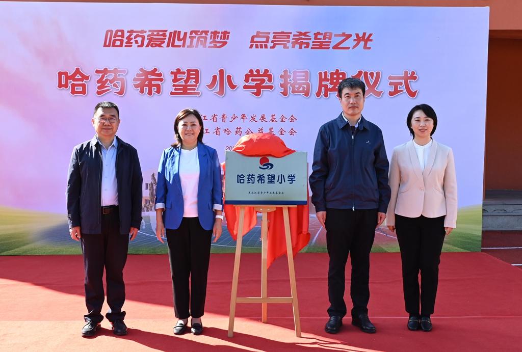 隨后,領(lǐng)導(dǎo)嘉賓為哈爾濱市香坊區(qū)幸福鎮(zhèn)哈藥希望小學(xué)揭牌,標(biāo)志著這所學(xué)校將以嶄新面貌,承載更多夢(mèng)想與希望,開啟新的篇章。