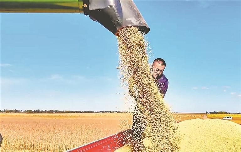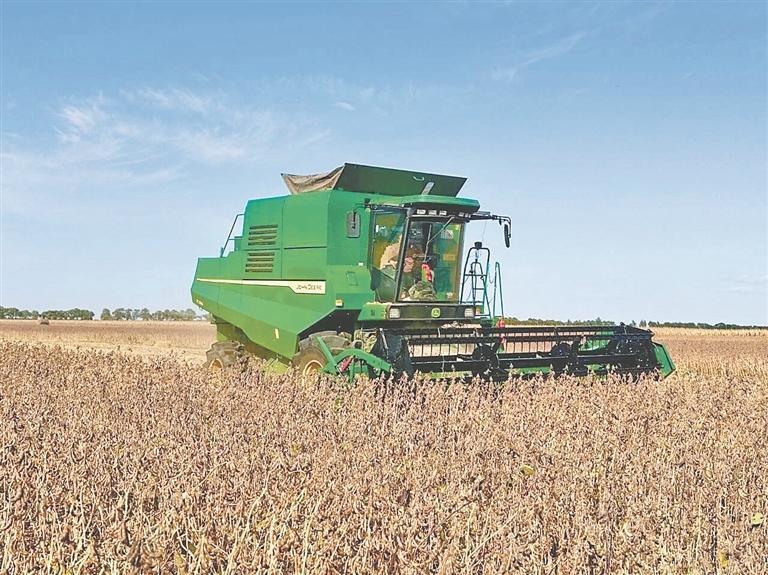 國慶假日,豐收時節(jié)。秋風拂過寶清縣青原鎮(zhèn)的田野,連片的大豆田泛起金黃浪涌,飽滿的豆莢壓彎豆稈,收割機轟鳴作業(yè),農戶們忙著分揀、裝袋,豐收的喜悅在田間地頭蔓延。