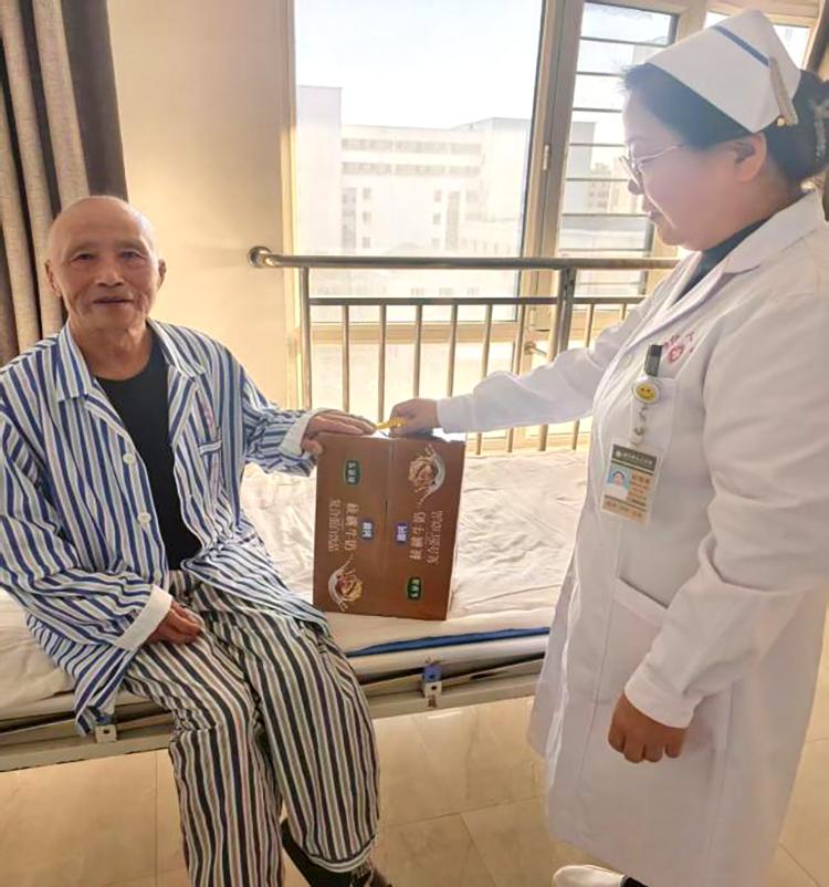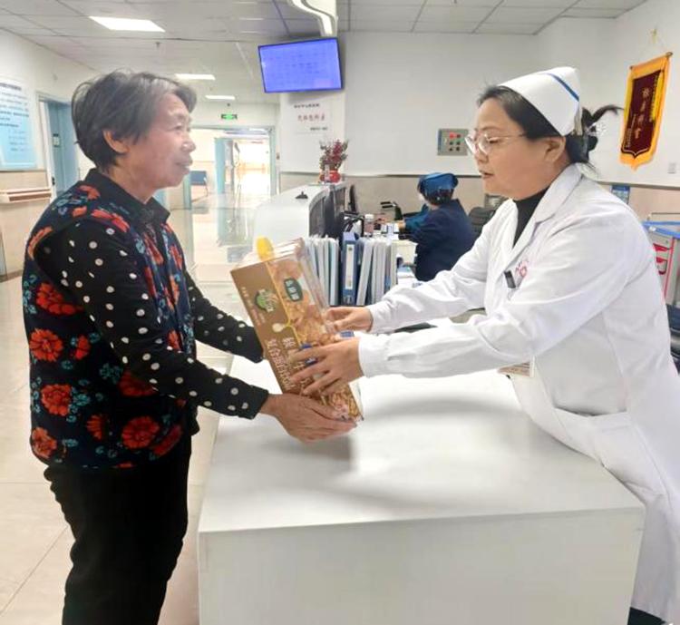 禮品雖小,情意濃重。開展活動期間,醫(yī)護人員們帶著精心準備的小禮品,走進每一位60歲以上老年患者的病房。這些小禮品雖然價格并不昂貴,但卻飽含著對患者的深深祝福。柔軟舒適的保暖襪,為患者在漸冷的霜降時節(jié)增添一份溫暖;營養(yǎng)豐富的滋補品,助力患者增強身體抵抗力;寓意吉祥的平安符,寄托著對患者早日康復(fù)的美好期許。當醫(yī)護人員將一份份小禮品送到患者手中時,患者們的臉上都洋溢著驚喜與感動的笑容,紛紛對科室的貼心關(guān)懷表示感謝?;颊邉⒁碳拥卣f:“在這個特殊的節(jié)日里,收到你們送的禮物,心里特別溫暖”。