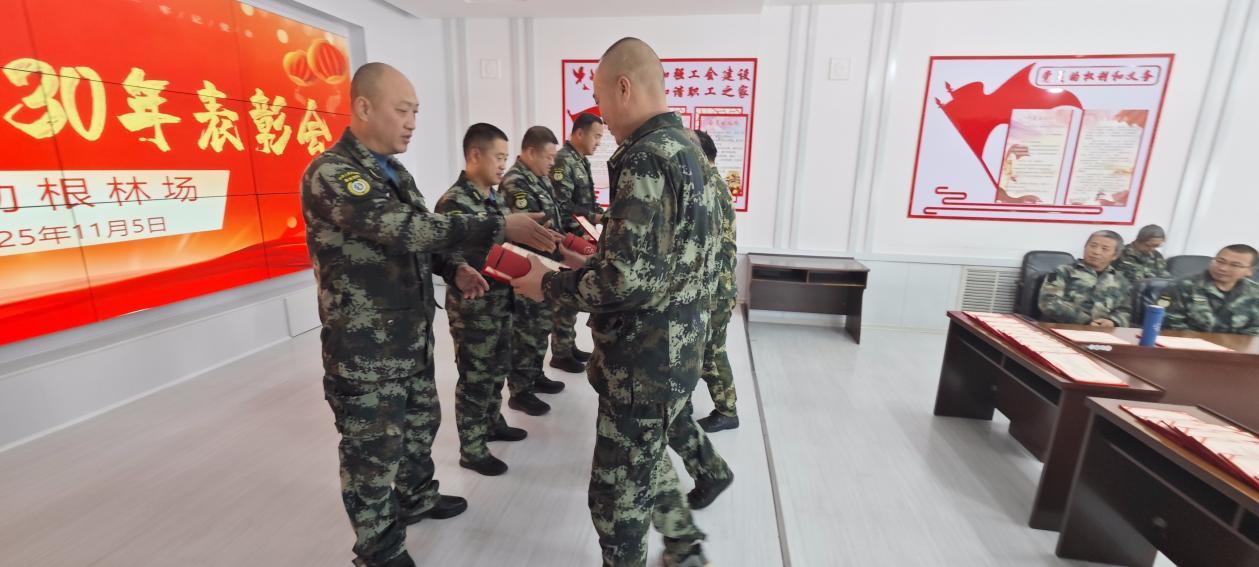 當(dāng)一本本鐫刻著“光榮在崗30年”的證書(shū)、一份份承載著林場(chǎng)深情的紀(jì)念品遞到職工們的手中時(shí),全場(chǎng)掌聲雷動(dòng)。這不是普通的證書(shū)與禮物,它鐫刻著30載春秋的堅(jiān)守,見(jiàn)證著職工們與林區(qū)共生共長(zhǎng)的歲月,更承載著林場(chǎng)對(duì)他們的由衷感謝與崇高敬意。