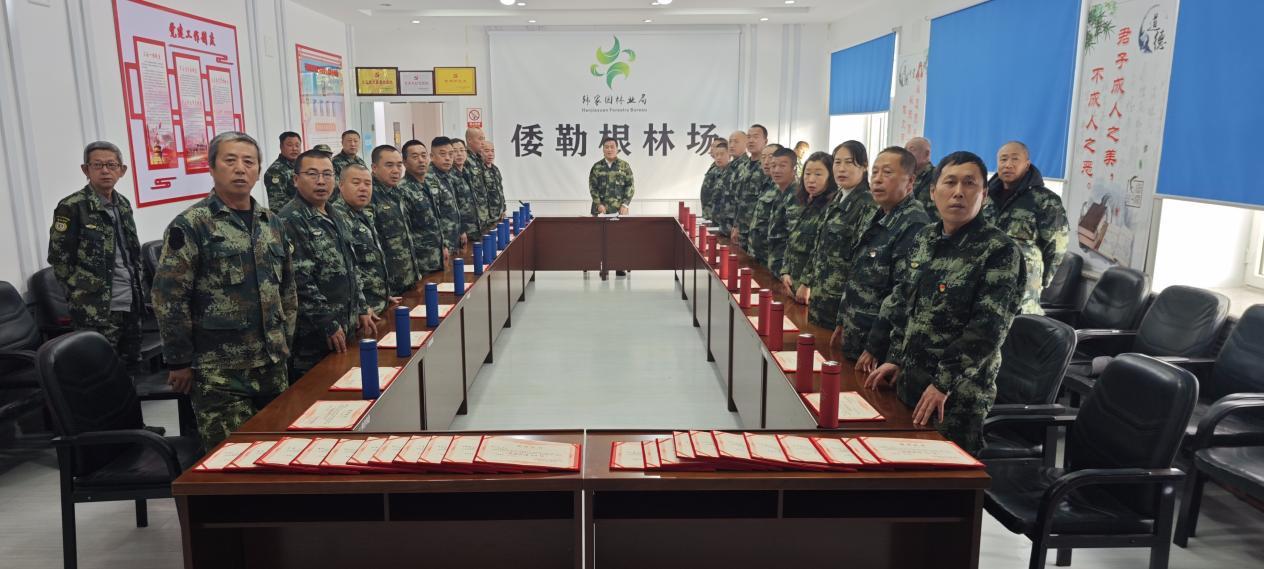 林場(chǎng)班子成員走上臺(tái),與職工們并肩而立,快門(mén)按下,定格了這一幀滿是敬意與溫暖的畫(huà)面。