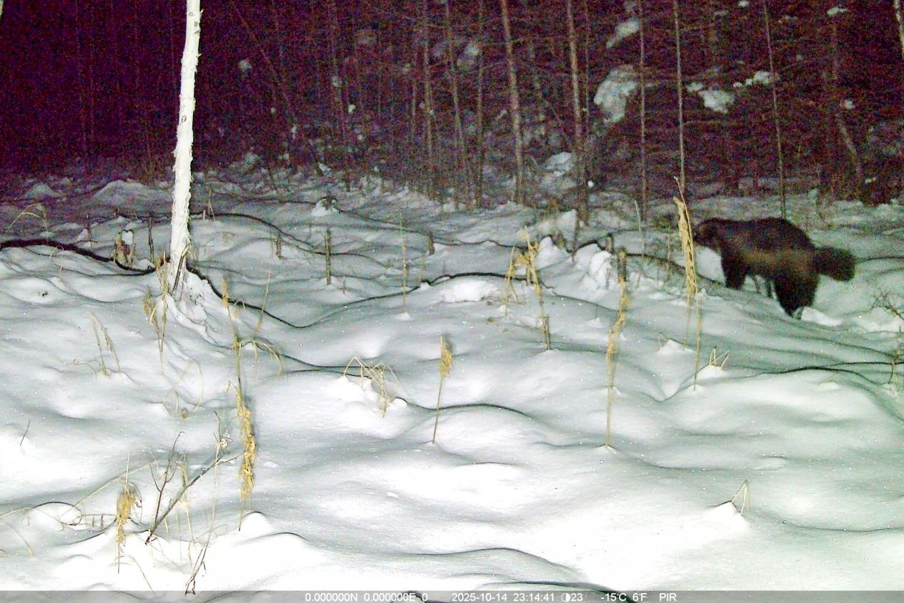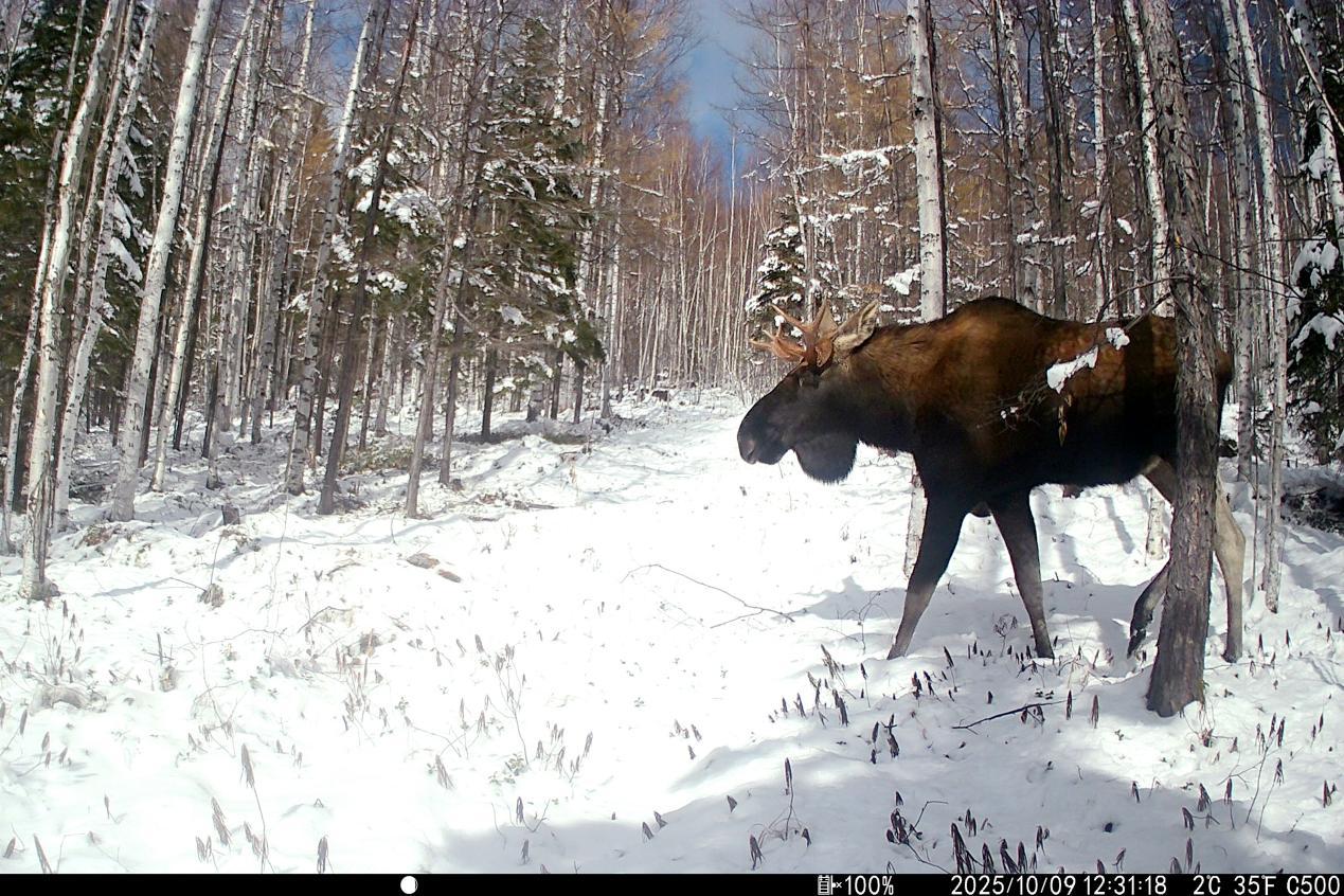 項目實施中,工作人員克服地形復(fù)雜、嚴(yán)寒天氣等挑戰(zhàn),深入森林公園腹地完成15條冬季樣線調(diào)查,并同步開展97臺紅外相機(jī)的維護(hù)與回收工作,累計獲取了大量珍貴野生動物影像資料及活動數(shù)據(jù)。監(jiān)測范圍內(nèi),駝鹿、原麝、貂熊、紫貂、猞猁、棕熊、馬鹿、花尾榛雞等國家重點保護(hù)野生動物相繼現(xiàn)身,更捕捉到原麝覓食、棕熊帶崽等罕見畫面,直觀印證了森林公園內(nèi)棲息地質(zhì)量優(yōu)良、生態(tài)保護(hù)成效顯著。