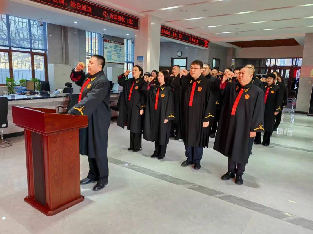 鏗鏘有力的誓言在全場回蕩,傳遞著人民法院干警對憲法的尊崇、對法治的信仰和對人民的承諾。