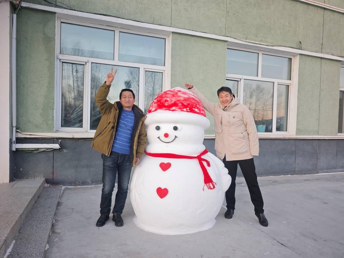 林場職工與雪人合影(李輝 攝)